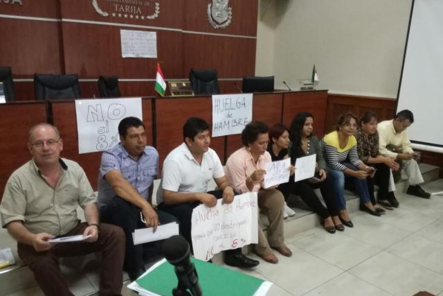 Dos asambleístas tarijeños iniciaron una huelga, se oponen a una Ley que obliga a la Gobernación a entregar el 8% de su presupuesto a los municipios provinciales.