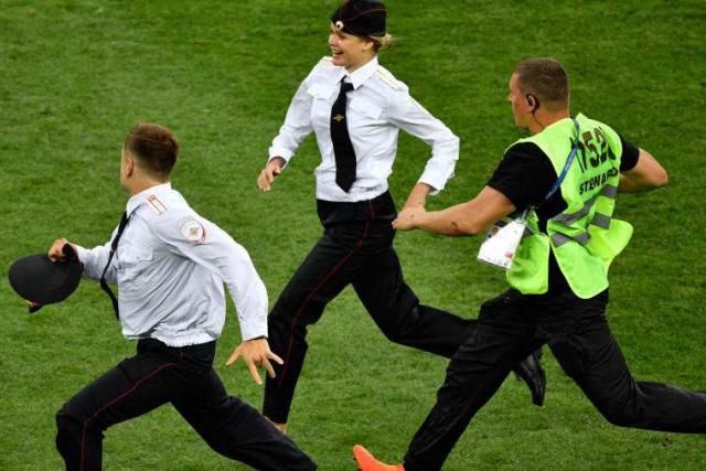 Cuatro chicas irrumpieron en el césped del estadio Luzhniki de Moscú y provocaron la interrupción de la final del Campeonato del Mundo Rusia 2018, que disputan las selecciones de Francia y Croacia.
