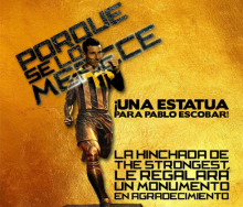 Hinchas del Tigre recaudan fondos para construir una estatua en honor a Pablo EscobarNoviembre 09 La campaña fue lanzada a través de Facebook. |