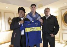 Lampe se reunió con Evo Morales en Argentina y le regaló la camiseta de BocaOctubre 20 El presidente boliviano se mostró sorprendido y alegre por el gesto del arquero |