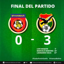 Martins marcó su gol 17 con la Selección en la goleada 0-3 ante MyanmarOctubre 13 La Selección boiviana ganó su primer partido al mando del técnico venezolano, César Farías. |