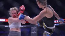 Luchadora de MMA desfigura a su rival con una potente patadaOctubre 23 Kristina Williams, de 28 años, desfiguró a su contrincante de 35 años al romperle la nariz con una fuerte patada y ganó por K.O. técnico. |