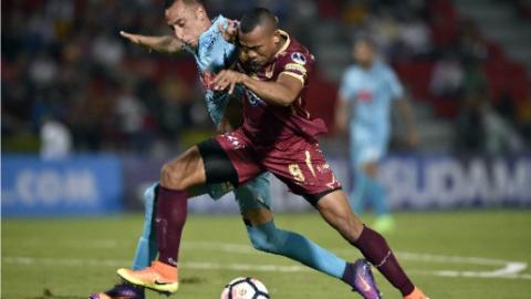 La academia derrotó a Deportes Tolima con lo justo, un solitario gol de penal, que no era, de Juan Carlos Arce le dio pasaje a la siguiente ronda del certamen internacional.