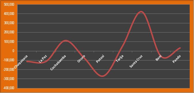 BOLIVIA: SALDO MIGRATORIO POR DEPARTAMENTO, CENSO 2012
