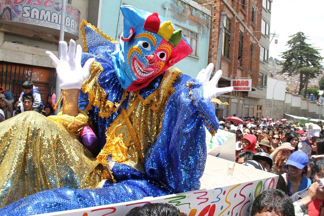 Así los medios lo detuvieron para que hablara a la prensa. Con su peculiar voz chillona mandó un abrazo a todos los ch’ukutas de la ciudad de La Paz e invitó a la gente a unirse a las festividades del Carnaval paceño 2016.