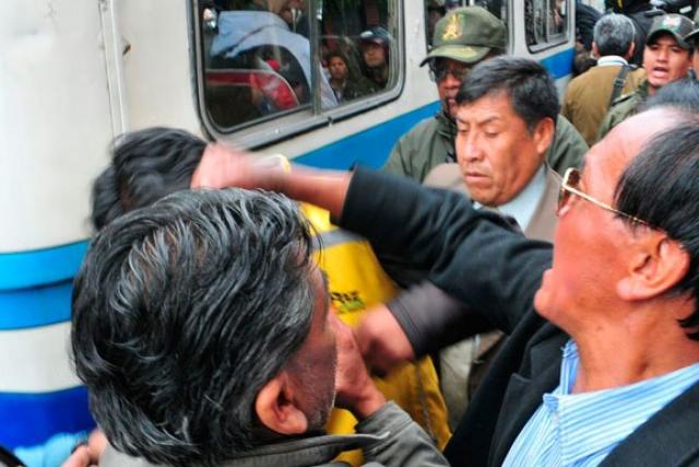 La Paz, 11 de enero (Oxígeno).- Los choferes del transporte público agredieron la mañana de este lunes a funcionarios ediles que realizaban el control en el Estadio y la Garita de Lima. Por su parte, el municipio paceño anunció procesos contra los agresores ante el Ministerio Público.