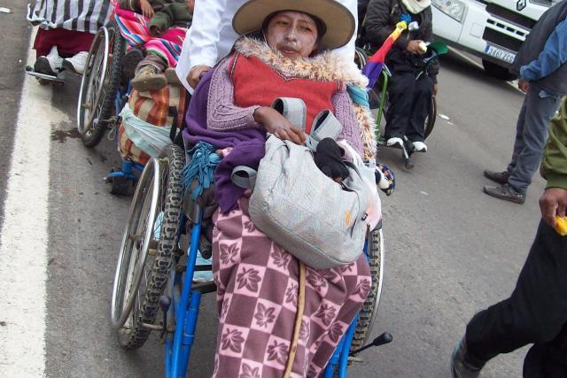 Desde hace más de un mes que Lidia C. de 23 años de edad participa en la caravana de las la personas con discapacidad que se dirige a la ciudad de La Paz en demanda del bono de 500 bolivianos. Ella llegó de Cochabamba, aunque es originaria de Potosí y se fue a la capital valluna en busca de mejores oportunidades laborales.
