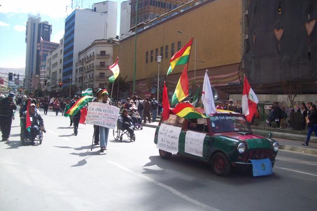 A pesar del cansancio y el deterioro en su salud, las personas con discapacidad, que permanecen en vigilia, realizaron hoy una marcha por las principales arterias de la ciudad de La Paz y anunciaron más movilizaciones para toda la semana en demanda de una renta de 500 bolivianos al mes.