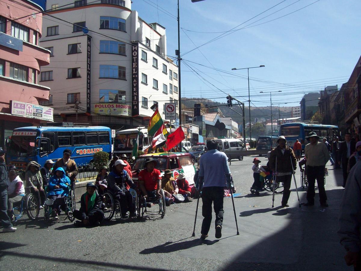 Hoy, la policía gasificó a las personas con discapacidad que intentaban ingresar a la plaza Murillo en demanda de la renta de 500 bolivianos. El conflicto se desarrolló en la avenida Armentia, cuando un grupo de los movilizados arrebató una gorra de un efectivo policial, lo que causó la molestia de los uniformados y comenzó la gasificación.