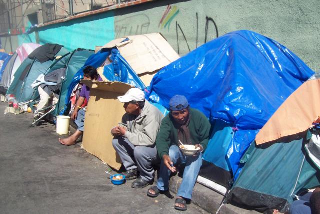 Las personas con discapacidad degustan su almuerzo en la vigilia. Foto: Oxígeno.bo