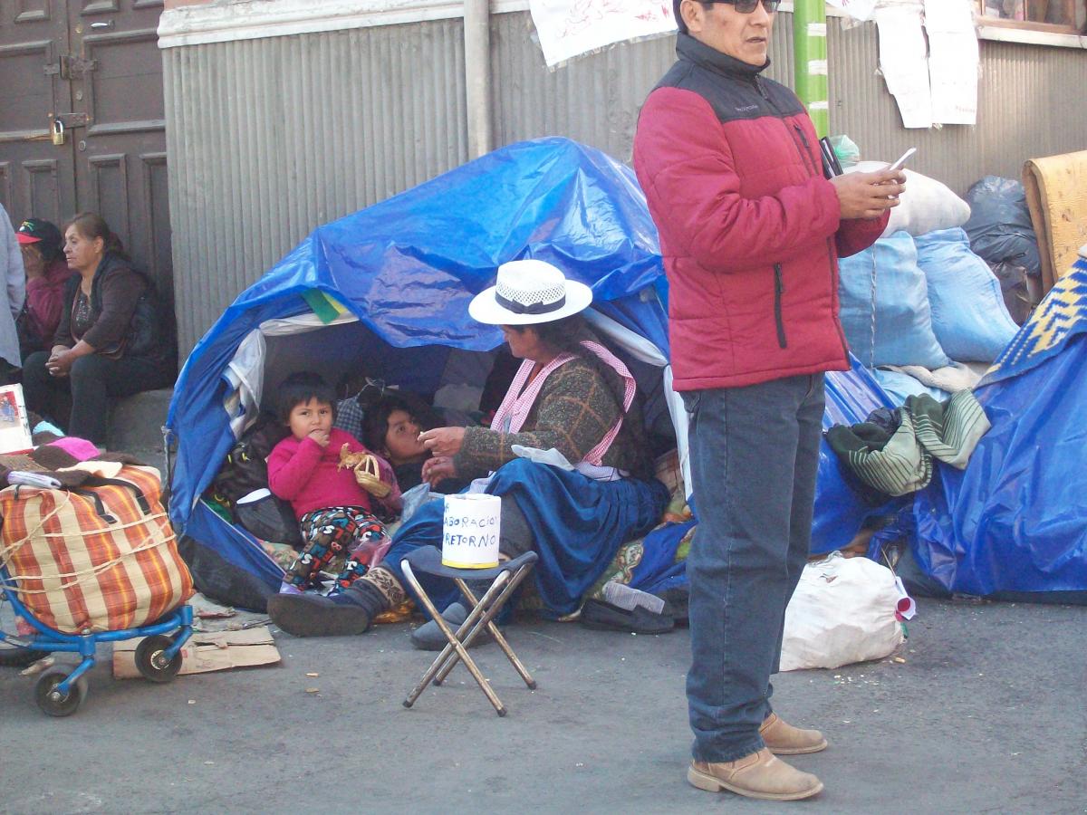 La misma situación vive Raquel Jimenez, madre de una joven de 23 años con discapacidad, asevera que la vida de su ‘niña’ no es nada fácil porque necesita ser atendida en ‘todo’. Ambas llegaron a La Paz desde Cochabamba en una caminata que duro 36 días en demanda del bono de 500 bolivianos y aún permanecen en la vigilia en cercanías de la plaza Murillo. Ellas tuvieron que soportar el clima frío de la urbe, ya que son oriundas de Santa Cruz.