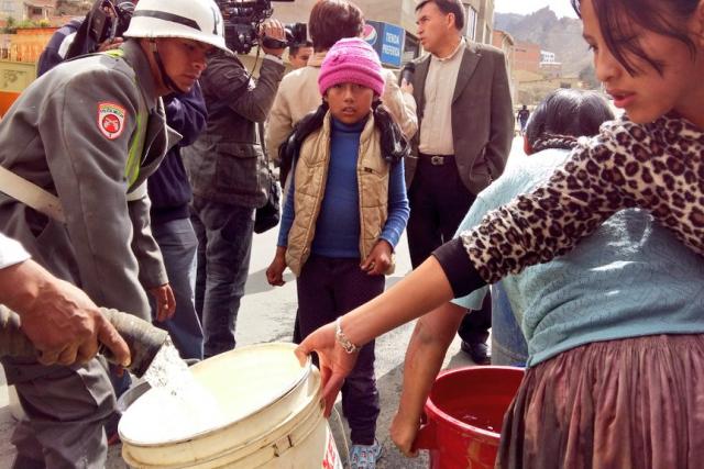 Desde ayer, las autoridades de gobierno se han dedicado a distribuir agua en cisternas, por ejemplo el presidente de Yacimientos Petrolíferos Fiscales Bolivianos (YPFB), Guillermo Achá, encabezó el lunes un convoy de 10 cisternas desde la Planta de Senkata hasta la zona de Alto Obrajes. Esta mañana, el ministro de la Presidencia,Juan Ramón Quintana, también acompaña la distribución de agua en Ovejuyo.