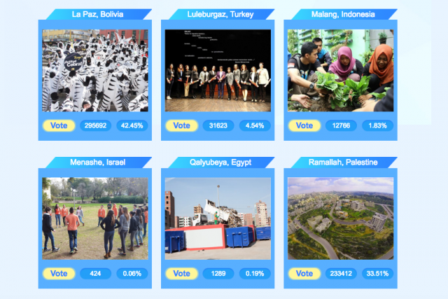 La votación acabó a las 12 del medio día del 5 de diciembre. En segundo lugar quedó la ciudad palestina de Ramallah con 233.412 votos, es decir el 35,51%; y en tercer lugar Asunción, Paraguay, con 5,62% de la votación, 39.113 votos.