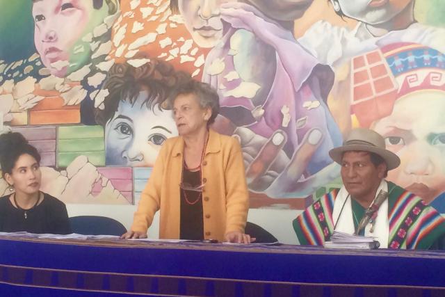 Amparo Carvajal en el acto realizado en la APDHB. Foto: Oxígeno.bo