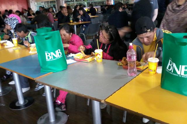 El evento, en La Paz, fue un almuerzo de confraternización entre voluntarios del BNB, UNICEF y personas con síndrome de Down de la fundación Aywiña, en el patio de comidas del Multicine. En la ocasión se reflexionó sobre los derechos de las personas con síndrome de Down.
