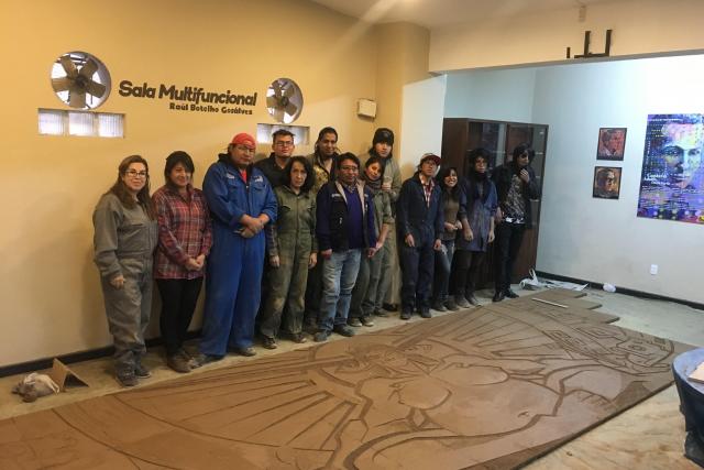 Artistas Bolivianos representan la iconografía Andina con murales hecho de ceramica que se presentarán en festivales y eventos en el país.