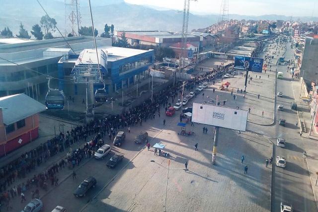 “Tenemos un nuevo récord mundial de haber transportado a más pasajeros en un día 194.971 pasajeros ayer miércoles en la jornada de paro”, publicó la empresa Mi Teleférico en su cuenta de Twitter. La cifra se habría dado el día de ayer por el paro de transporte público en La Paz.
