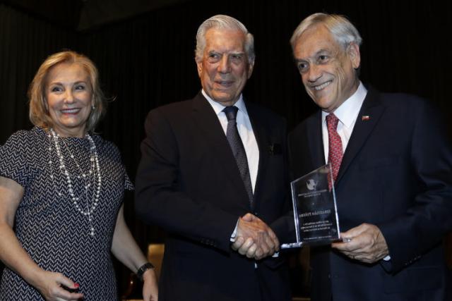 Piñera recibe premio de mano de Mario Vargas Llosa