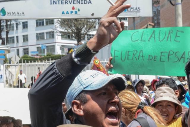 El 13 de este mes, los representantes de 160 juntas vecinales del macrodistrito de Periférica emitieron un voto resolutivo en cuyo artículo primero se exige la “inmediata renuncia irrevocable de Humberto Claure, actual gerente interventor de EPSAS por su identificación como operador político del Movimiento Al Socialismo, por haber utilizado el Proyecto de la Red Secundaria de Agua Potable Chuquiaguillo como bandera política”.