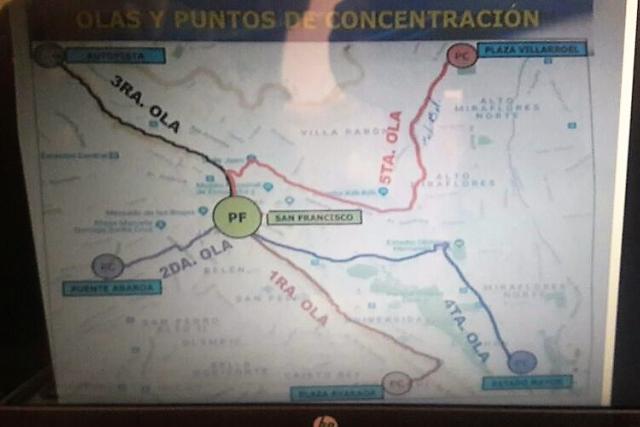 Las marchas partirán de la Autopista, de la Plaza Villarroel, del Estado Mayor, de la Plaza Avaroa y del Puente Avaroa. Todas con dirección a la Plaza de San Francisco.