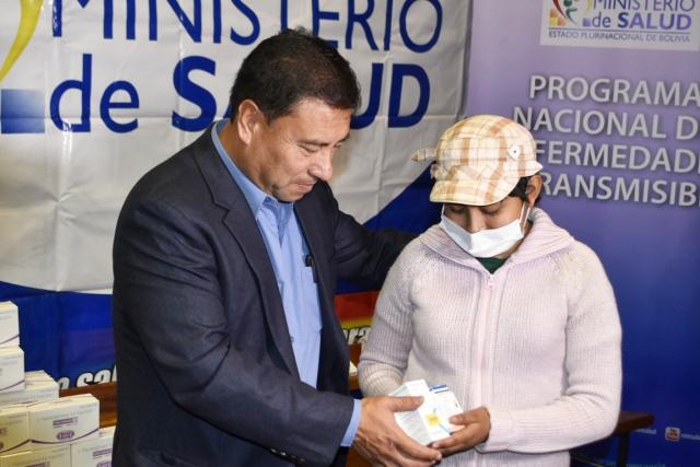 El ministro Rocabado entrega los medicamentos oncológicos.