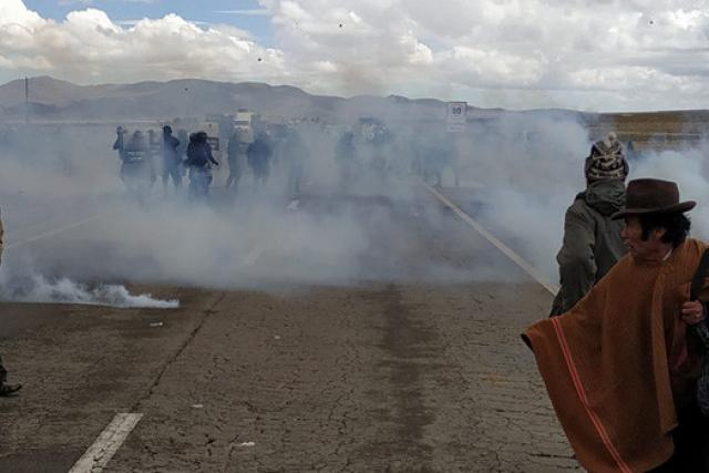 Los pobladores de Luribay y Sica Sica bloquearon la madrugada de este lunes la carretera La Paz - Oruro, a la altura del cruce Luribay, exigen a la Asamblea Legislativa Departamental de La Paz la aprobaión de un convenio que permite financiar el asfaltado del cruce Luribay-Salla. Cerca de medio día, un contingente antimotines de la Policía gasificó a los pobladores para habilitar la vía.