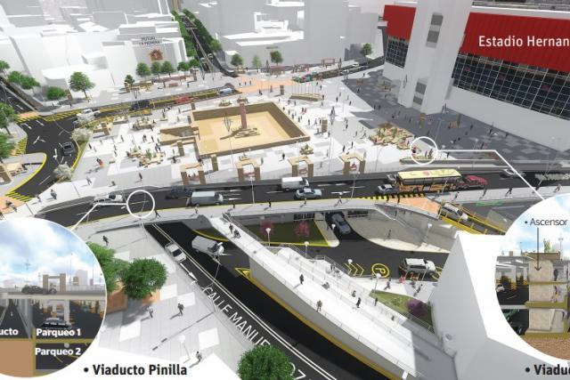 El rediseño de la plaza del Estadio como se la conoce tendrá 7.344 metros cuadrados (la actual tiene dos mil), descongestionará la zona (por donde pasan hasta seis mil vehículos en horas pico) y despejará vías al tener dos niveles de parqueos subterráneos con una capacidad de 253 vehículos y 71 motocicletas.
