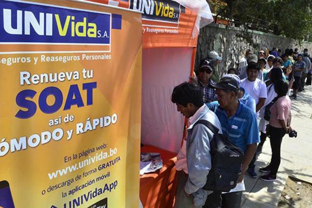 La venta del Seguro Obligatorio contra Accidentes de Tránsito (SOAT) 2019 comenzará mañana, sábado, en al menos 1.600 puntos a nivel nacional, entre entidades financieras, comercios autorizados y puestos fijos, informó el viernes el presidente del Directorio de UNIVida, Gonzalo Arauz.