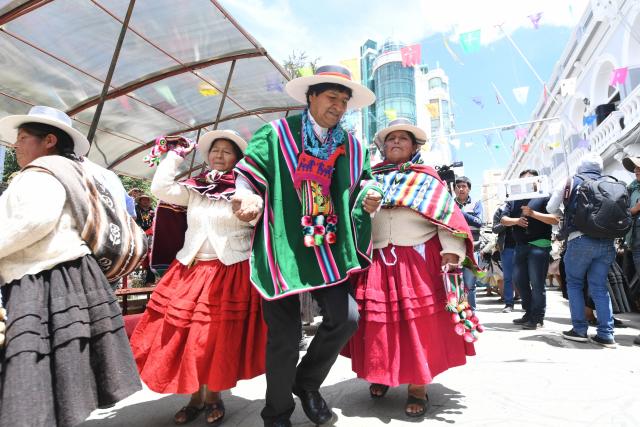 Morales bailó con los participantes al ritmo de la Tarqueada, Pinquillada y Moseñada. También lo hizo con su comunidad de origen, Orinoca, de la provincia Carangas del departamento de Oruro.