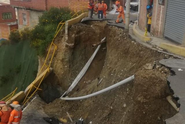 "Hace dos años que venimos exigiendo obras de estabilización a la Alcaldía debido a que esta plataforma es producto de tierra rellenada que no fue compactada adecuadamente y fue asfaltada hace menos de un año, y ahora se ha producido el deslizamiento", explicó.