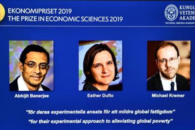 El premio Nobel de Economía fue asignado en forma conjunta a los economistas Abhijit Banerjee, Esther Duflo y Michael Kremer por el enfoque experimental en la lucha contra la pobreza global, anunció hoy la Academia de Ciencias sueca.