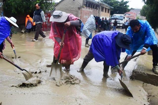 Una intensa lluvia caída en Cochabamba provocó el desborde del río Taquiña en el municipio de Tiquipaya, provocando una mazamorra que afectó a viviendas de la zona.