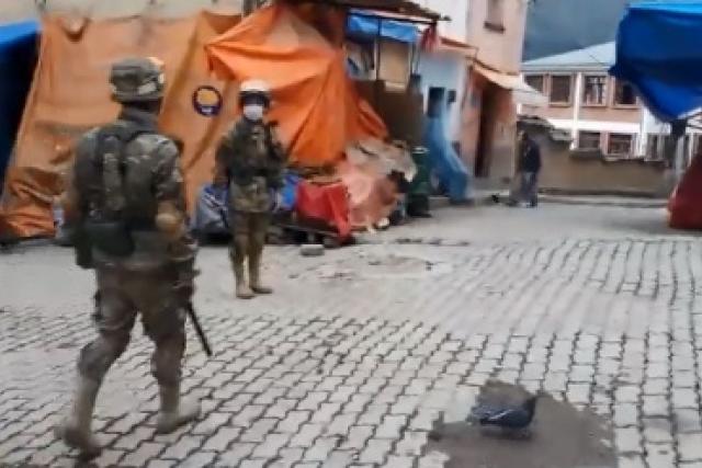 Aproximadamente a las 06.30, un grupo de militares que recorren las calles de Chulumani, dos cuadras debajo de la plaza principal, al llegar a una de las intersecciones que unen cuatro bocacalles, gritaban a los pocos ciudadanos que se encontraban fuera de sus casas: “A sus viviendas estamos en cuarentena”.