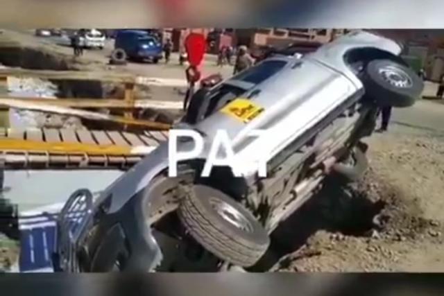 Una camioneta con personal de la Subalcaldía Cotahuma sufrió un accidente al cruzar un puente de madera que se rompió, camino a Viacha. No hay daños personales y la Alcaldía, a través de un comunicado, desmintió el rumor de que los funcionarios ediles a bordo del automóvil se hayan encontrado en estado de ebriedad.