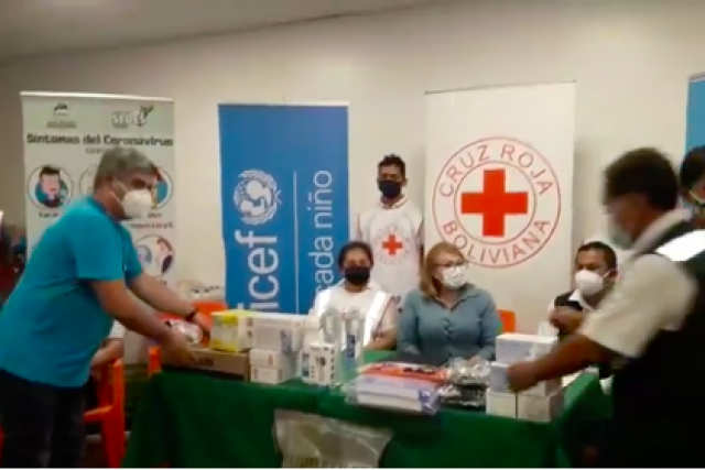 La Cruz Roja Boliviana y UNICEF, en coordinación con el Ministerio de Salud y Deportes, entregó 1.8 toneladas de insumos de bioseguridad e higiene para prevenir y enfrentar la pandemia de la COVID-19 en Pando. Esta ayuda llegará a las comunidades indígenas de cinco naciones originarias de Machineri, Yaminagua, Tacana, Cavineño y Esse eeja.