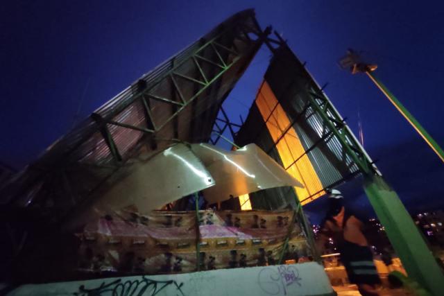 El subalcalde Osorio afirmó que se evalúa el daño estructural para retirar todo el material metálico, previa desenergización. “No podemos recuperar el tinglado, pero vamos a habilitar la cancha para la actividad deportiva a cielo abierto con malla perimetral e iluminación”, dijo a tiempo de anunciar que el cierre de la vía por el sector es por algunas horas y no dificulta el tránsito vehicular.