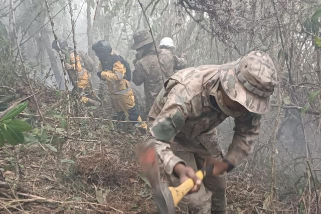El Ministerio de Defensa informó que se movilizó a 33 bomberos forestales del “Batallón de Comunicaciones I coronel Vidaurre”, quienes ahora combaten el incendio forestal en el Parque Cotapata, ubicado en la provincia Nor Yungas, municipio de Coroico.