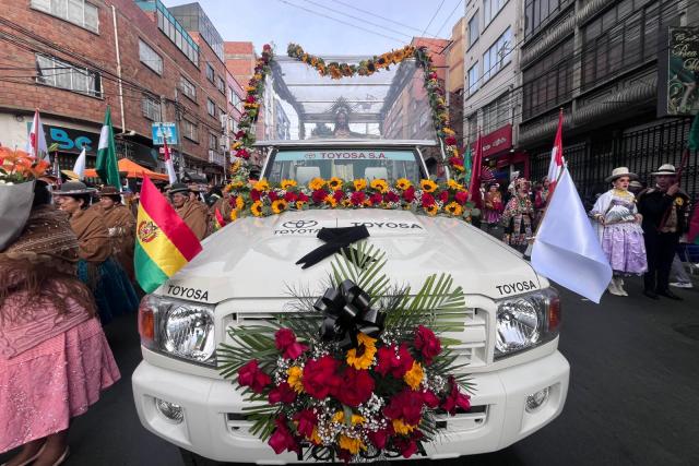 “El Papamóvil fue traído desde Chile y luego estaba en Santa Cruz, ha transportado dos veces al Papa, ahora es un honor que esté acá en el Bicentenario de Bolivia, dando grandeza a lo que es la Entrada del Gran Poder”, remarcó el Alcalde. Anoche denominaron al vehículo “Tatamóvil”.