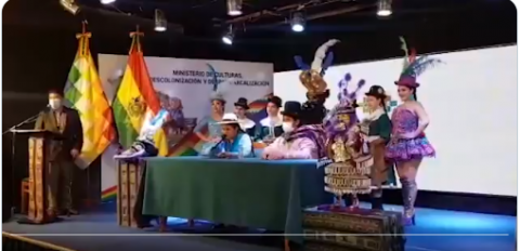 El anuncio fue realizado durante el acto de reivindicación de las danzas bolivianas, denominado “Matracas y cascabeles reviven sus raíces”, desarrollado en la plaza Murillo de la ciudad de La Paz.