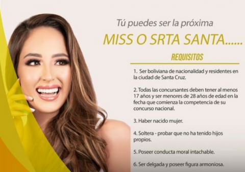 A través de un comunicado, el el Servicio Plurinacional de la Mujer y de la Despatriarcalización señaló que la convocatoria a Miss Santa Cruz “reproduce estereotipos y roles de género que son semilla de las violencias hacia las mujeres”.