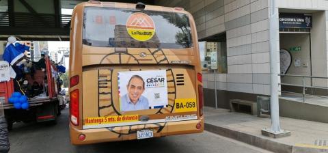 Según denunció La Paz Bus, un afiche del candidato Cesar Dockweiller fue pegado en un bus Pumakatari. Según se verificó en las cámaras de seguridad, algunos militantes aprovecharon una caravana para cometer el hecho.