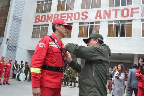 Entre los condecorados está el subcomandante del Cuerpo de Bomberos, Jorge Ramírez, quien estuvo en la línea de fuego y el 20 de agosto estuvo a punto de ser alcanzado por las llamas en la comunidad de Jalisco.