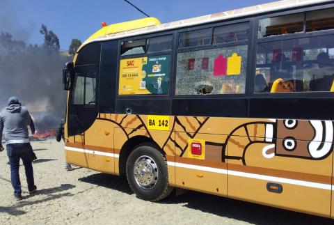 Los choferes se apostaron en el puente Huayllani para evitar el paso de los buses municipales y no cesaron en su propósito a pesar de que la policía los persuadió inicialmente a levantar el bloqueo.