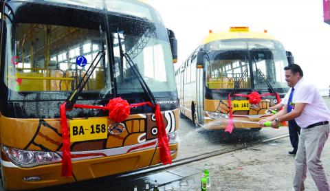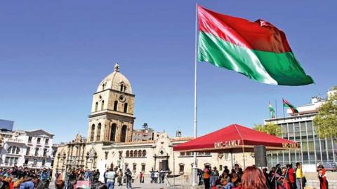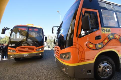 A la cabeza del alcalde de La Paz, Luis Revilla, 20 de los nuevos los buses municipales – más pequeños que los Pumakatarí- recorrieron las principales calles de la ciudad de La Paz.