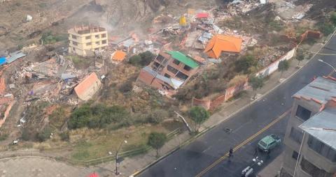 La Municipalidad planificó la demolición de 22 viviendas que están en la franja roja, al borde del deslizamiento. Las mismas serán expropiadas por la Alcaldía de La Paz.
