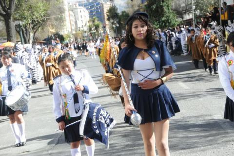 Hoy marcharon los estudiantes de la zona de Chasquipampa. Los desfiles escolares continuarán en los siguientes días y se prolongarán hasta el próximo domingo.
