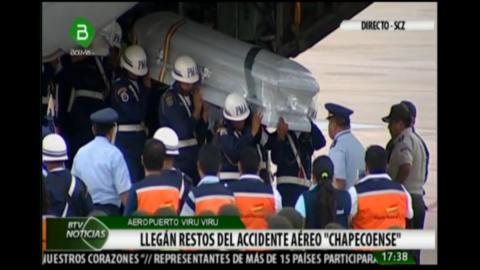 Los cuerpos de los tripulantes bolivianos que fallecieron en el accidente de la aerolínea LaMia fueron repatriados hoy en un avión Hércules de las Fuerzas Armadas de Bolivia.