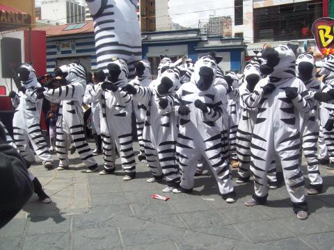 ¡Actitud Cebra!, gritan los educadores urbanos del Gobierno Municipal de La Paz, tras terminar de bailar la canción “Ciudad Maravillosa” de Octavia. Es el cierre de las actividades de celebración por el 15 aniversario de las cebras.
