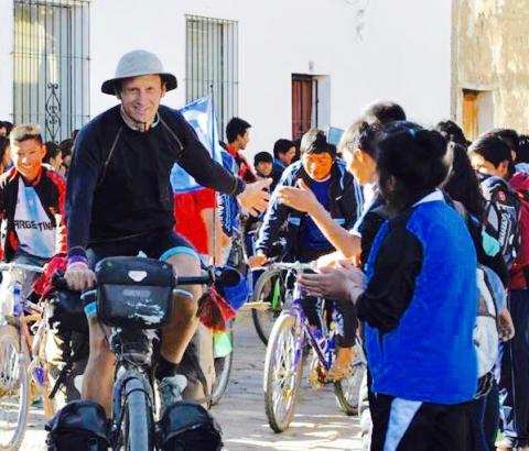 Laurent Simon es un activista francés por los derechos de las niñas que recorrió Bolivia en su bicicleta como parte de la campaña Por ser niña de Plan Internacional Bolivia.