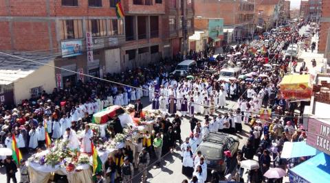 El lunes se celebrará una misa en el atrio del templo a las 11:00; a la media noche será la concentración en la Catedral Metropolitana para la peregrinación y a las 5:00 la misa en Quillacollo.